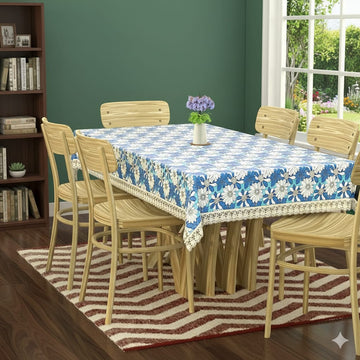 Ryka Blue Check 4 Seater PVC Table Cover | Dining Table Cover | Waterproof, Durable & Easy Clean,Pvc dining table cover with white lace