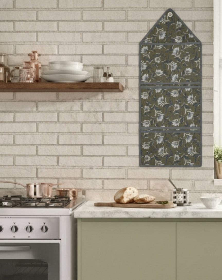 Upgrade your kitchen or home storage with this Premium Wall Hanging Organizer grey floral , designed to keep your essentials neat, accessible, and beautifully displayed. Featuring a stylish floral print and durable stitched pockets, this wall organizer adds both functionality and elegance to your décor.