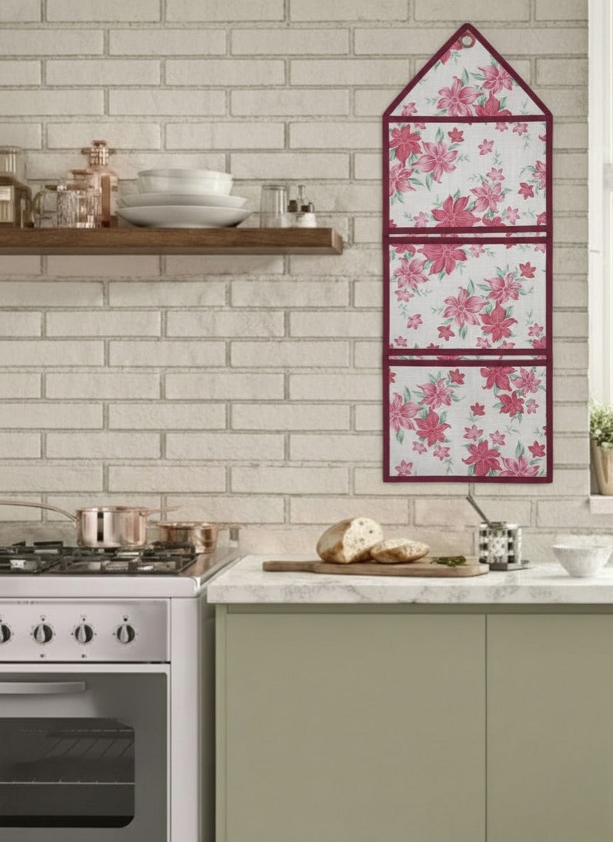 Upgrade your kitchen or home storage with this Premium Wall Hanging Organizer pink floral, designed to keep your essentials neat, accessible, and beautifully displayed. Featuring a stylish floral print and durable stitched pockets, this wall organizer adds both functionality and elegance to your décor.
