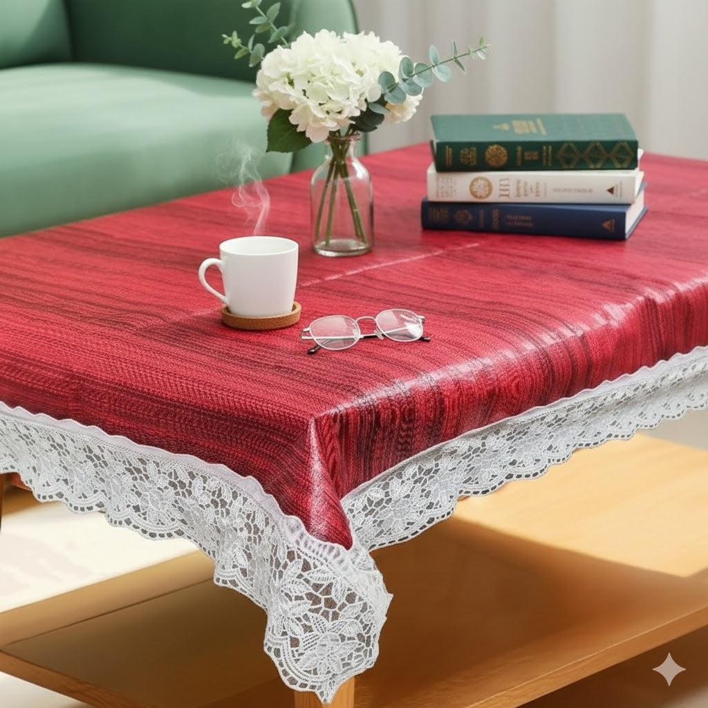 Ryka red wooden 4 Seater PVC Table Cover | Dining Table Cover | Waterproof, Durable & Easy Clean,Pvc dining table cover with white lace